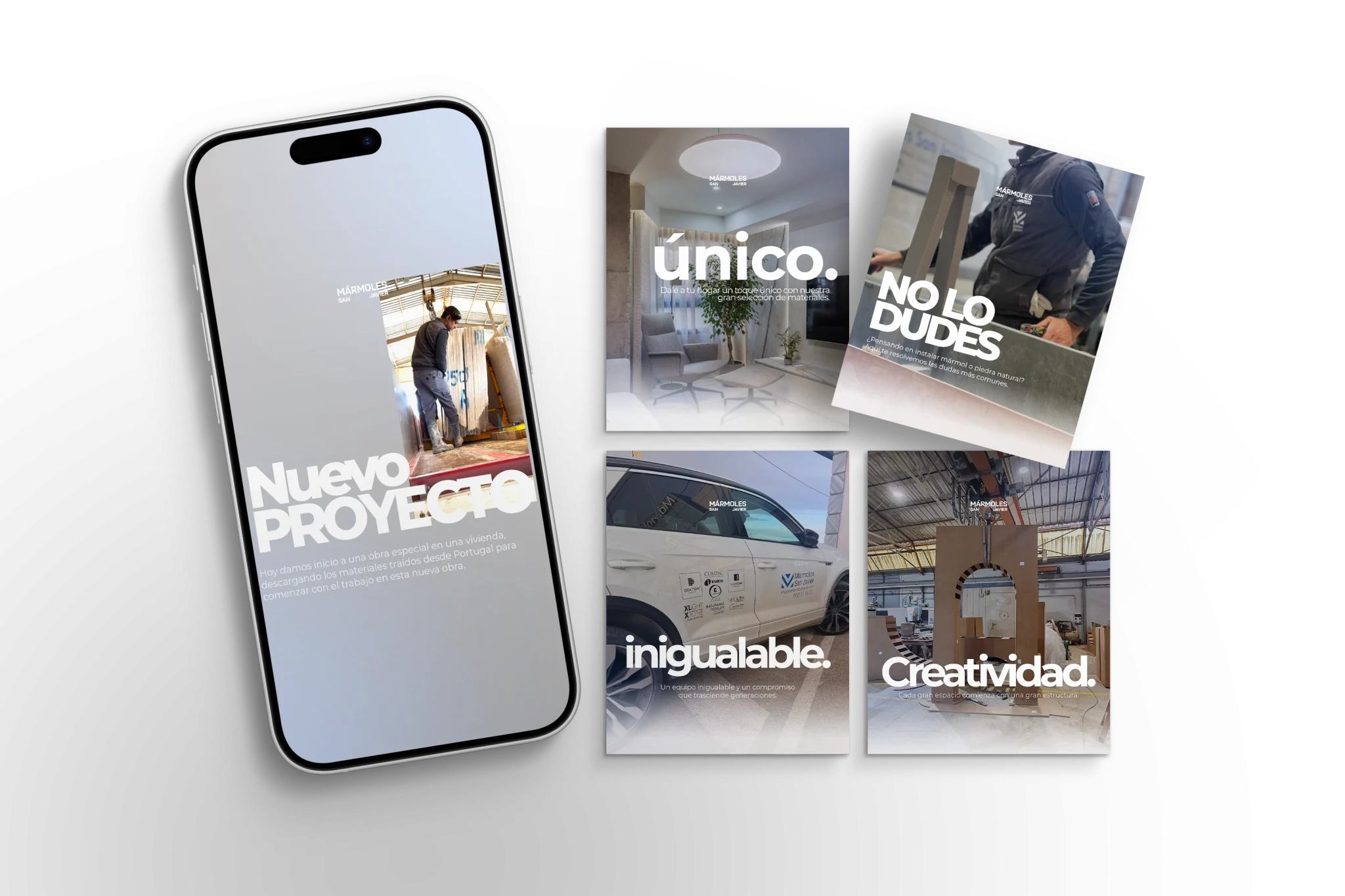 Para Mármoles San Javier activamos su presencia digital: redes sociales con contenido visual potente, un vídeo que muestra su esencia y acciones de posicionamiento que refuerzan su marca. Desde 1984, confían en su oficio, y ahora también en nosotros para mostrarlo al mundo.